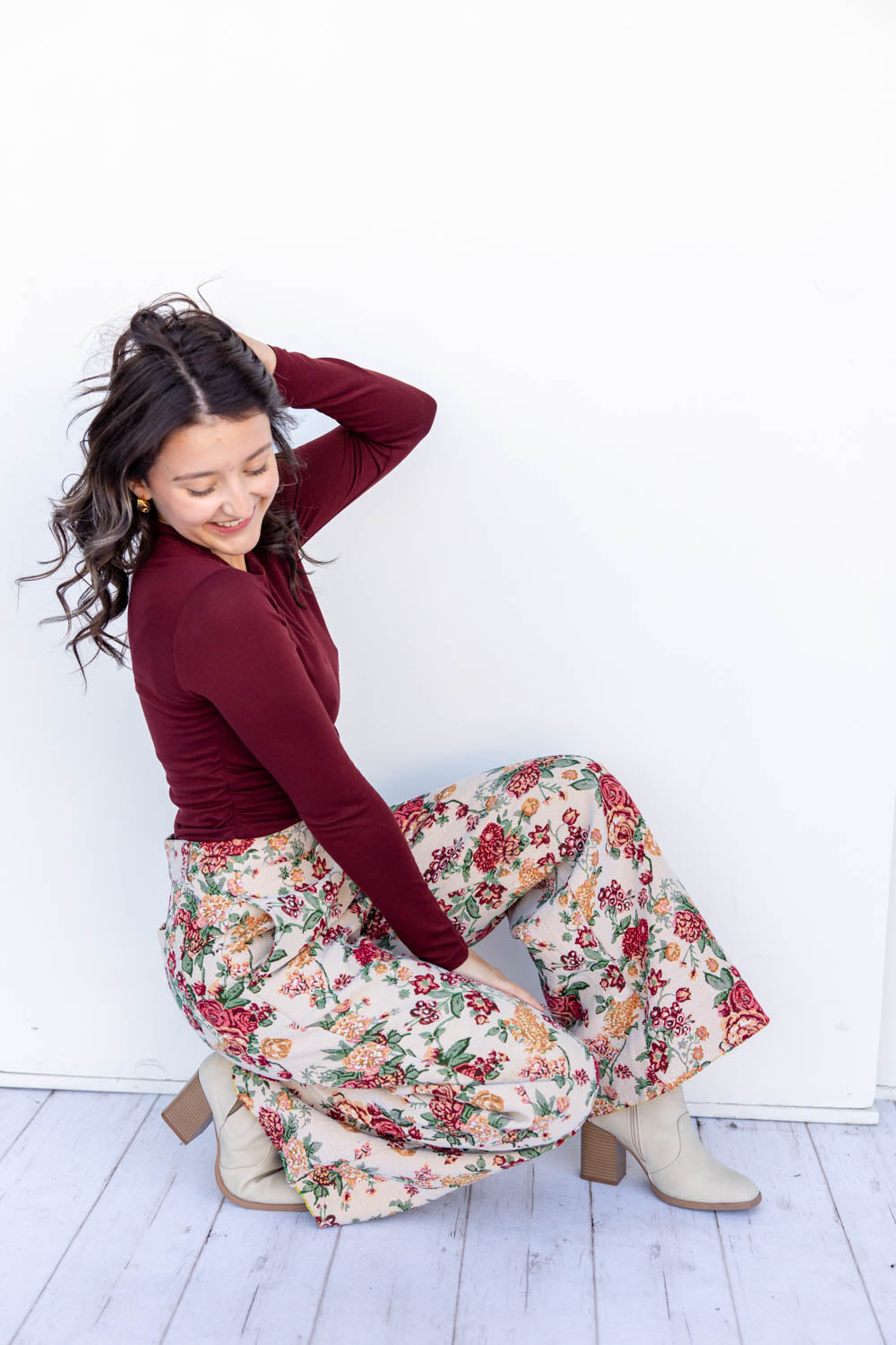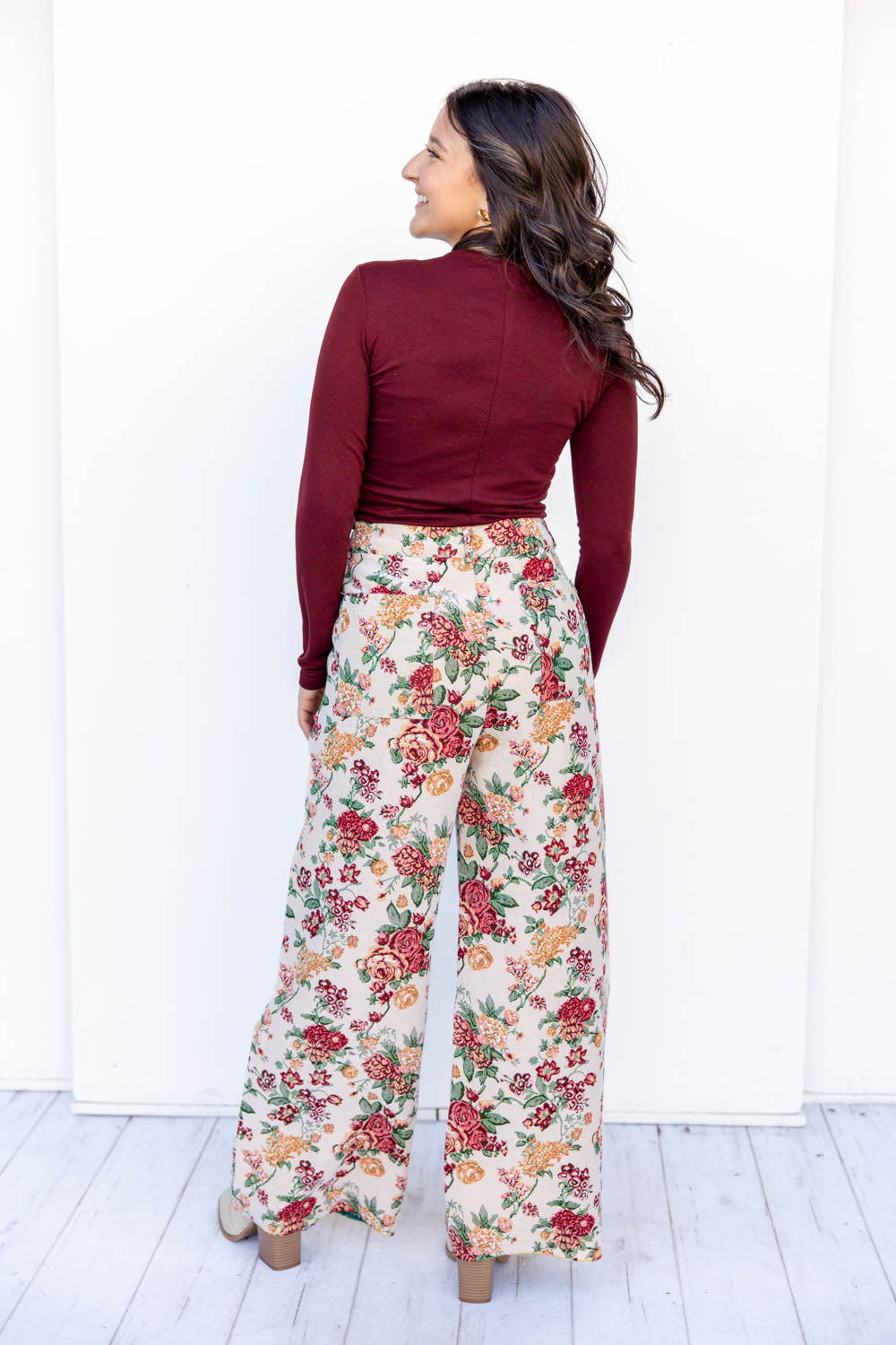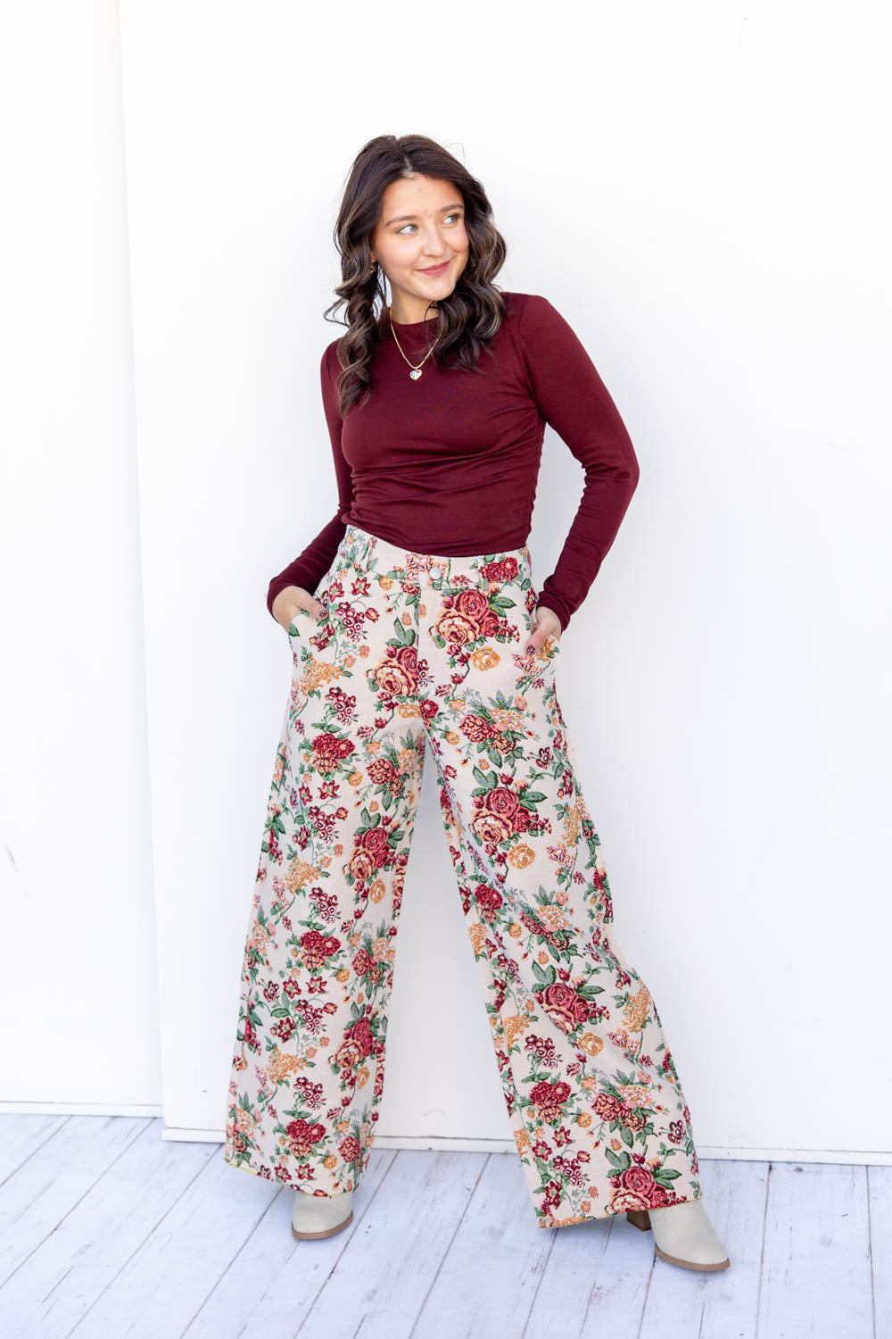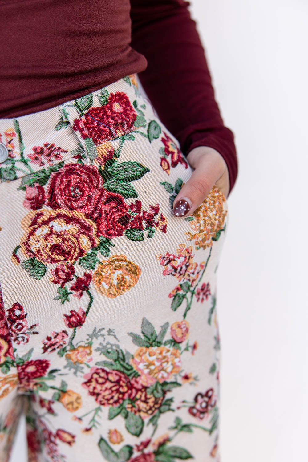 The Bloomed Beauty Floral Wide Leg Pants are elegance with a side of edge. Featuring a wide leg and ankle-length cut, they offer a bold silhouette that’s easy to dress up or down. The floral jacquard pattern adds rich texture and depth, giving these pants a luxe feel without being over the top. Crafted in a structured, non-stretch fabric with a classic button and zip closure, they hold their shape while still feeling effortlessly wearable. Functional front pockets keep things practical, because yes—you can have style and convenience in one statement piece.
