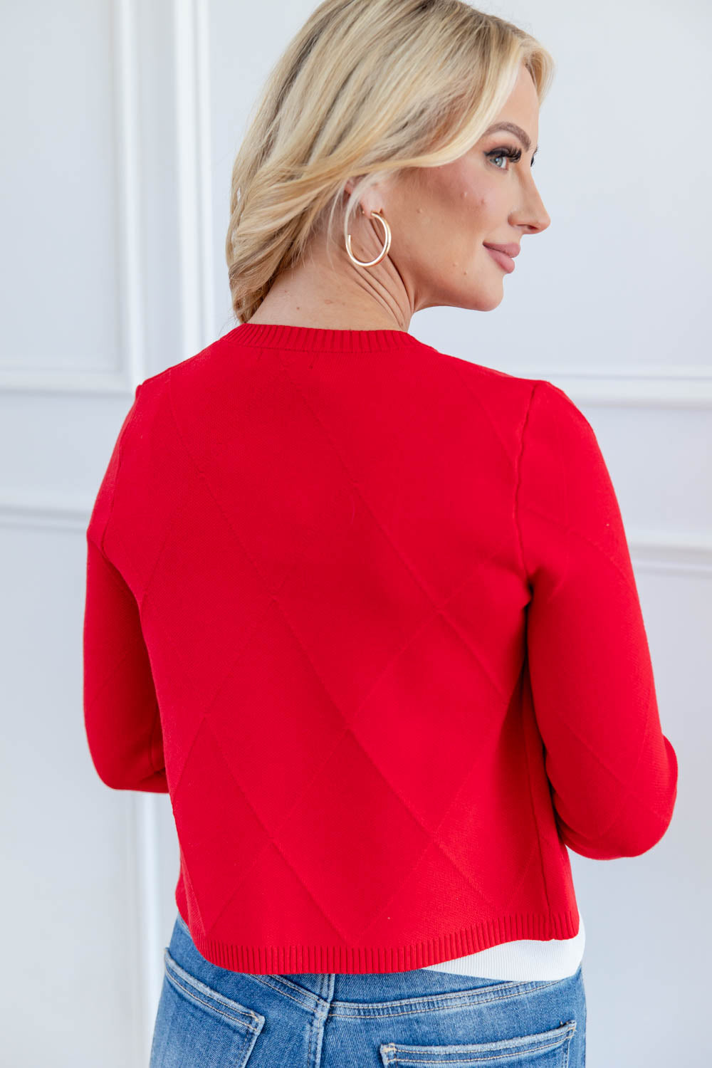 The Bow My Gosh Cardigan is sweet, simple, and effortlessly pulled together. With a boxy, true to size fit and semi-cropped length, it layers beautifully without adding bulk. The open front design makes it easy to toss on and go, while the soft midweight fabric keeps things cozy but breathable. Tonal mini bow details add a flirty finish, and the subtle diamond texture knit brings quiet dimension. It’s the kind of piece that adds charm without even trying.