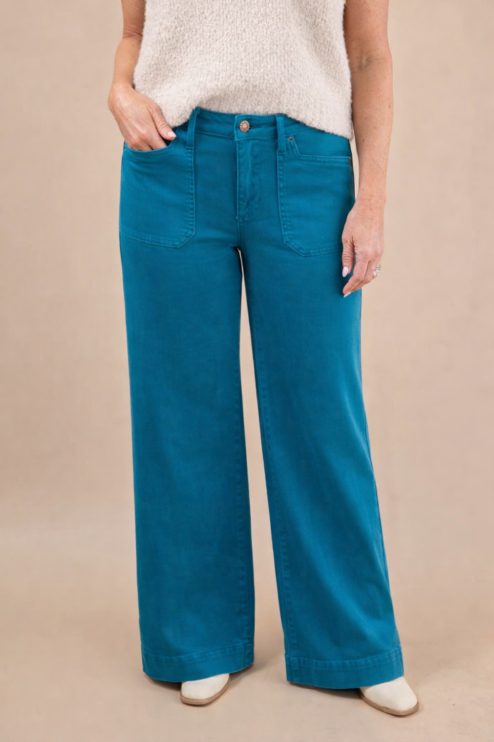 Fit Advice for our Calm Waters Teal Wide Leg Jeans: