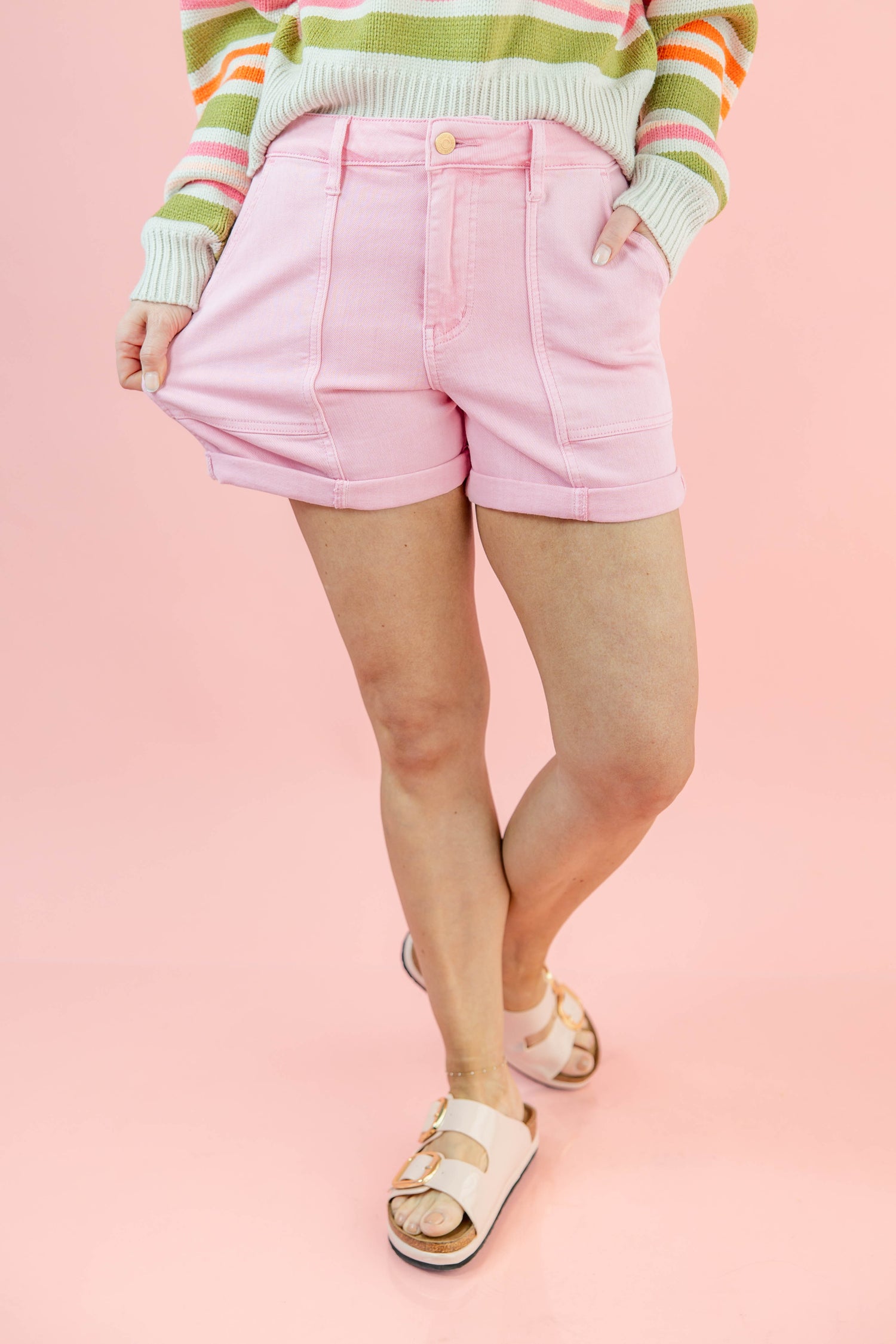 Fit Advice for our Candy Coated Pink Weekender Cuffed Denim Shorts: