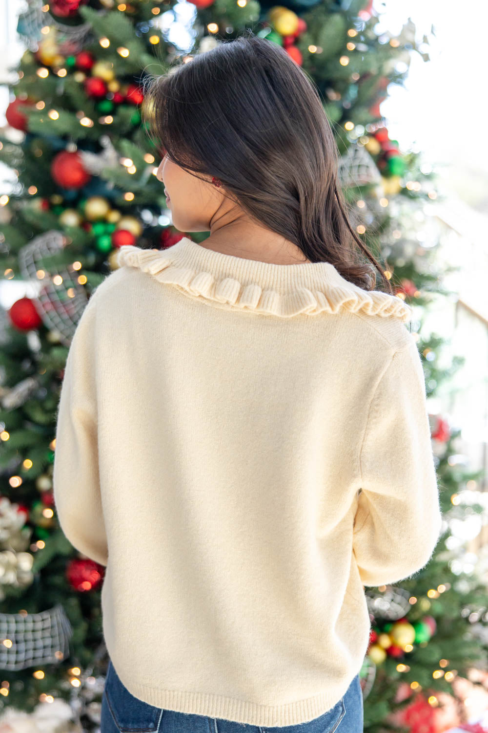 The Chilly Day Darling Ruffled Cardigan blends sweetness with softness in all the right ways. With a relaxed fit and hip-length cut, it features a functional button front and long sleeves for easy layering. The standout ruffled collar neckline adds a feminine, vintage-inspired touch, while the soft, cozy material makes it a go-to for curling up or heading out. Style it over a slip dress or with your favorite jeans for a look that’s charmingly effortless.