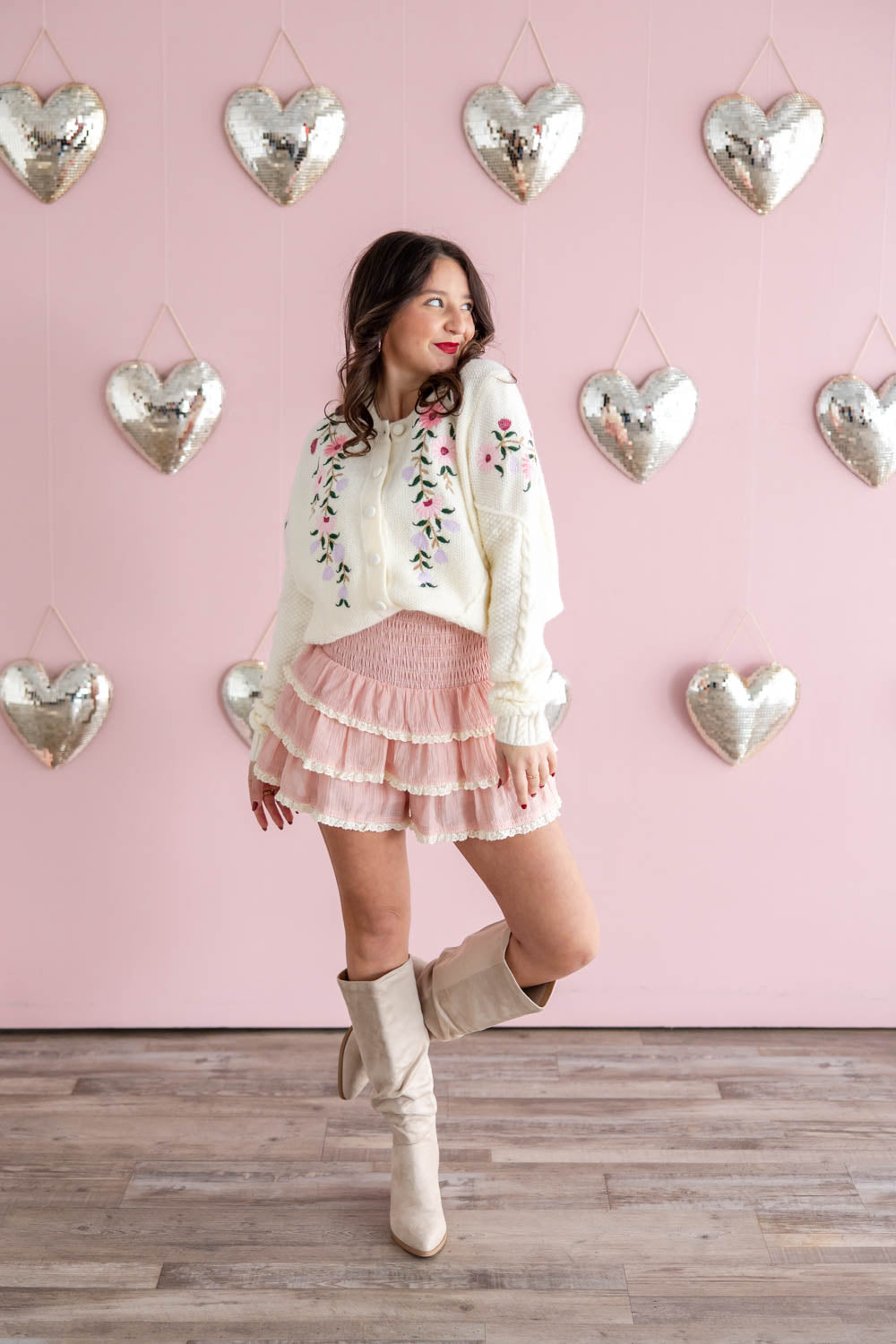 The Cloverfield Cozy Cardigan Sweater brings texture, warmth, and just the right amount of charm. With a relaxed fit that stays true to size and a hip-length cut, it layers with ease over your everyday favorites. The collarless crew neckline keeps things simple, while cable knit detailing along the sleeves and hem adds a cozy touch. Embroidered floral accents bring in a hint of whimsy without feeling precious. Made from a mid-weight knit and finished with a functional button front, it's that just-right piece for crisp mornings, breezy afternoons, and everything in between.