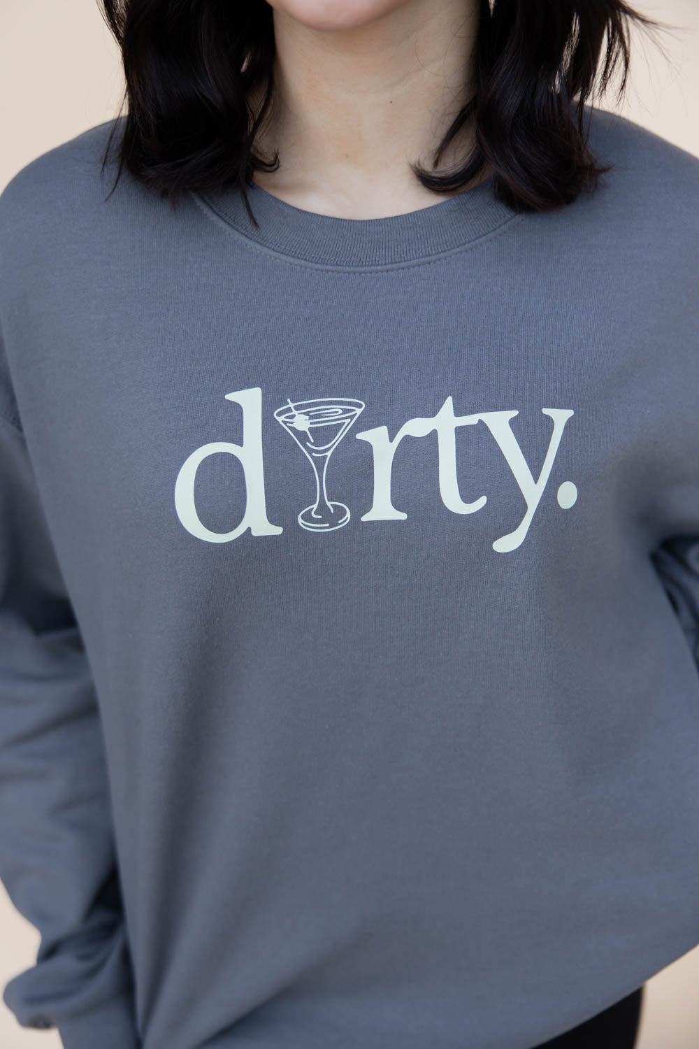 The Dirty Martini Graphic Crewneck Sweatshirt serves up comfort with a splash of sass. Designed with a unisex, slightly relaxed fit and a cozy fuzzy interior, it's made for laid-back days with a cheeky twist. The classic gray base features white-green lettering with a clever martini glass replacing the “i” in “dirty,” adding a playful edge to your casual lineup. Finished with a timeless crew neckline, this sweatshirt is equal parts cozy and cool—perfect for cocktail nights in or turning heads on your coffee run.