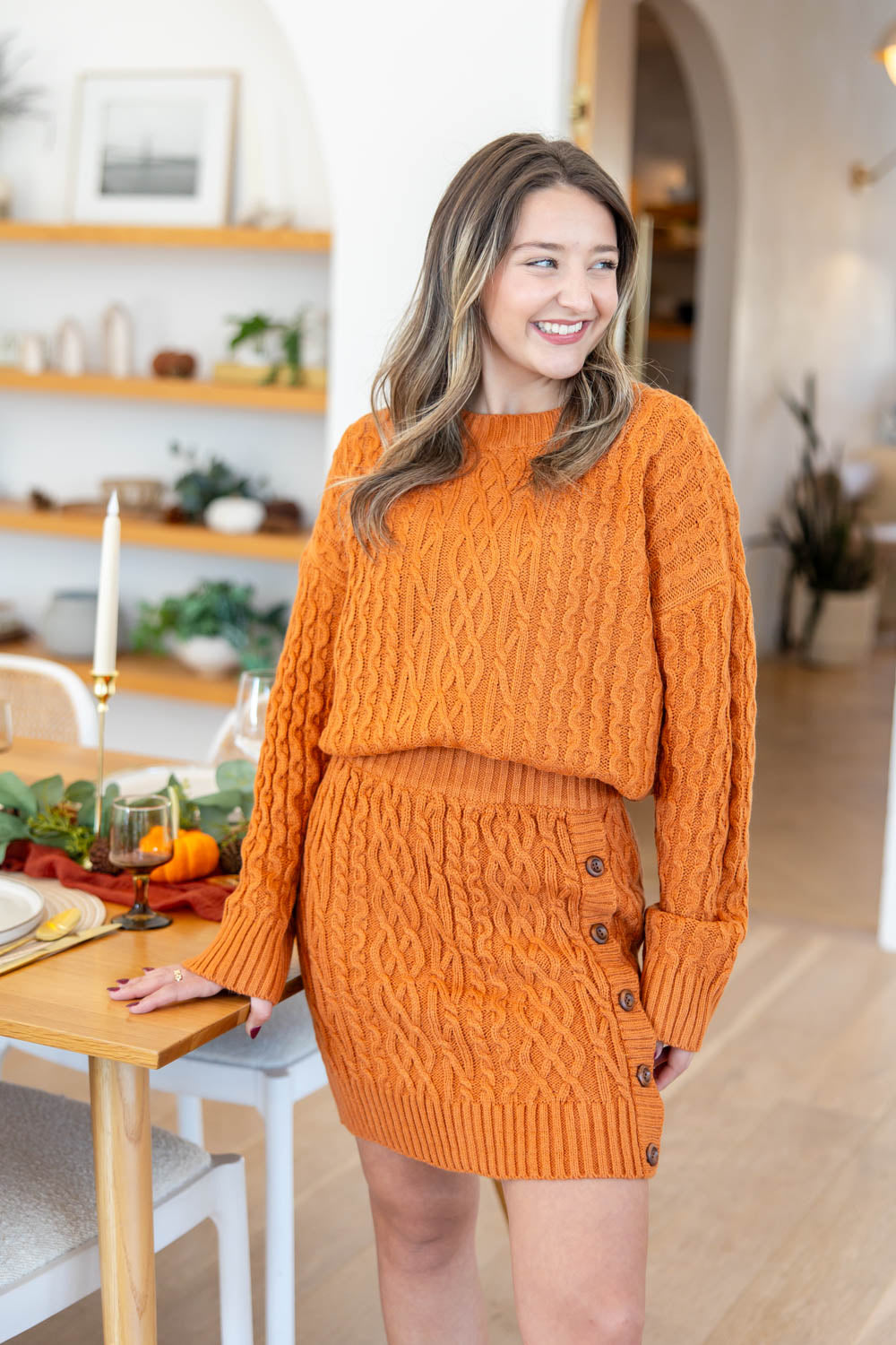 The Dreamy Drift Cable Knit Sweater Skirt Set is cozy-meets-chic in the best way. The mid-weight cable knit pencil mini skirt features a ribbed hem and comfy elastic waistband, complete with faux button detailing for a polished finish. Paired with the matching relaxed-fit sweater featuring a classic crew neckline, this set is effortlessly stylish and ready for cooler days. Wear together for a coordinated look, or mix and match with your favorite knits and boots for endless outfit options.
