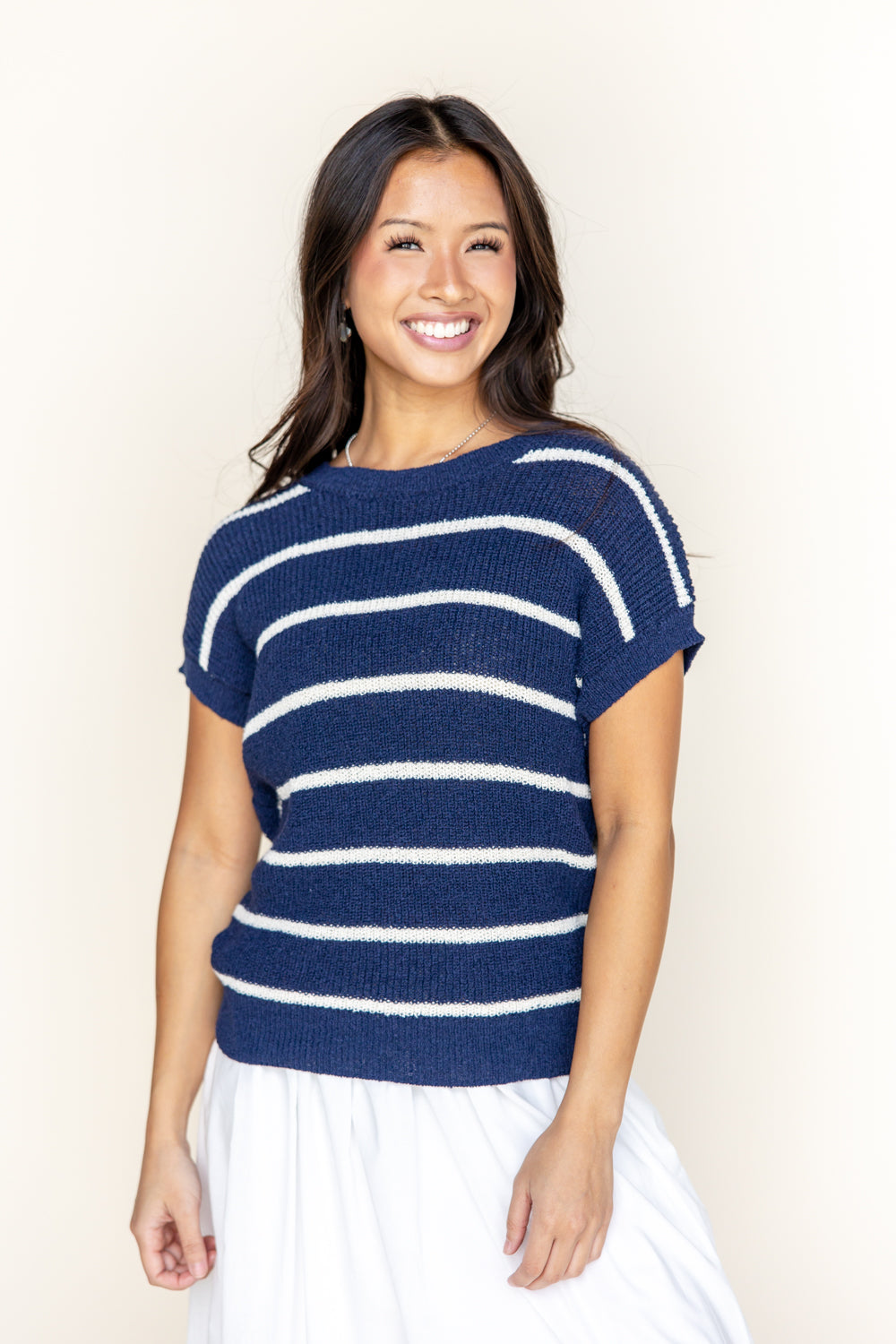 The Fearless and Free Knit Top is all about easy style with a bold twist. Featuring a true-to-size fit and stretchy, lightweight knit, it’s as comfy as it is cute. The ribbed crew neckline, trim, and hem give it a clean finish, while the horizontal stripes add a fun, confident vibe. Hip-length and ready for anything!