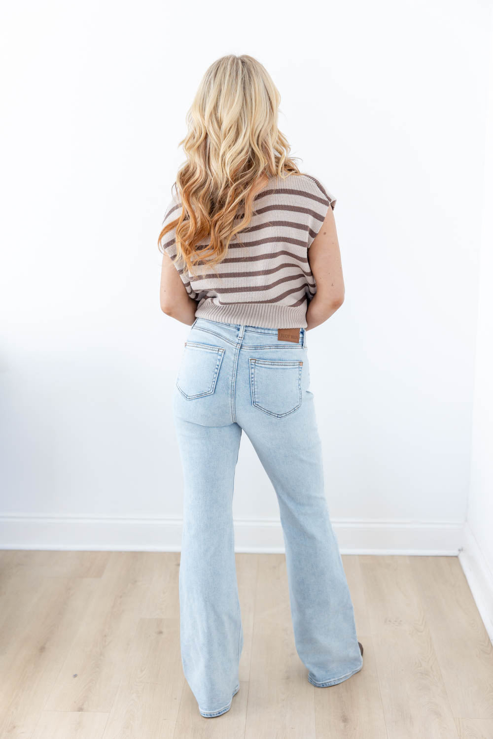 The Good Vibes Only Button Fly Flare Jeans brings vintage-inspired style with a fresh, flattering fit. Designed with a subtle high rise, it elongates your shape without feeling too structured. The bleached light wash gives it a soft, laid-back vibe, while the flare leg adds movement and a touch of drama. Stitched front patch pockets bring in retro charm and functional detail. Finished with a clean, non-distressed look and a classic button fly, this pair is made for easy styling and all-day confidence.