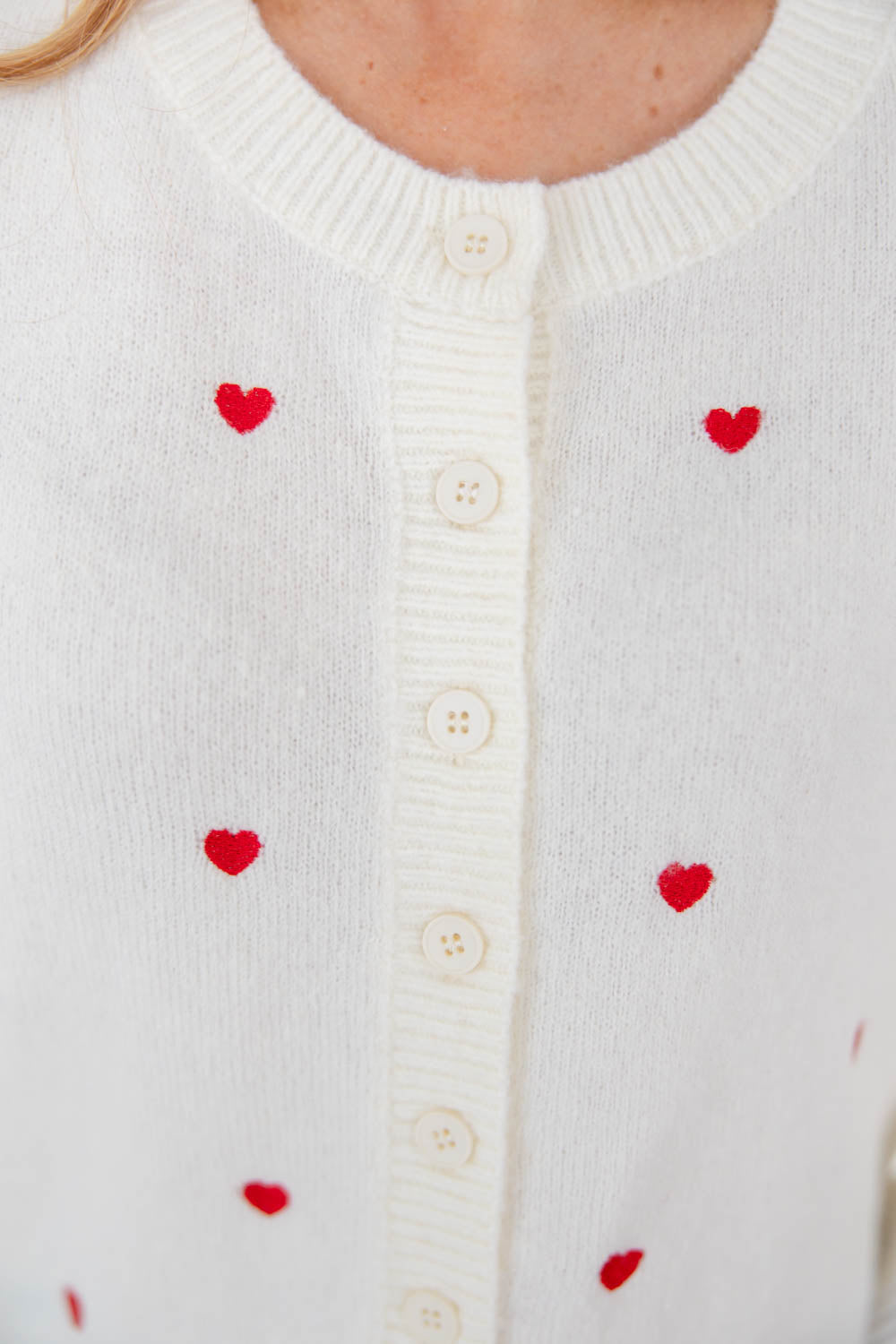 This one’s all charm with zero effort. The Head Over Hearts Button Down Cardigan Sweater fits true to size with a flattering hip-length cut that plays well with anything high-rise. Lightweight knit keeps things breezy, while the button front gives you options for layering or letting it shine solo. The collarless crew neckline is sleek and unfussy, but the real standout? Tiny embroidered hearts in a bold contrast that catch just enough attention. It’s cute, it's cool, and it knows exactly what it’s doing.
