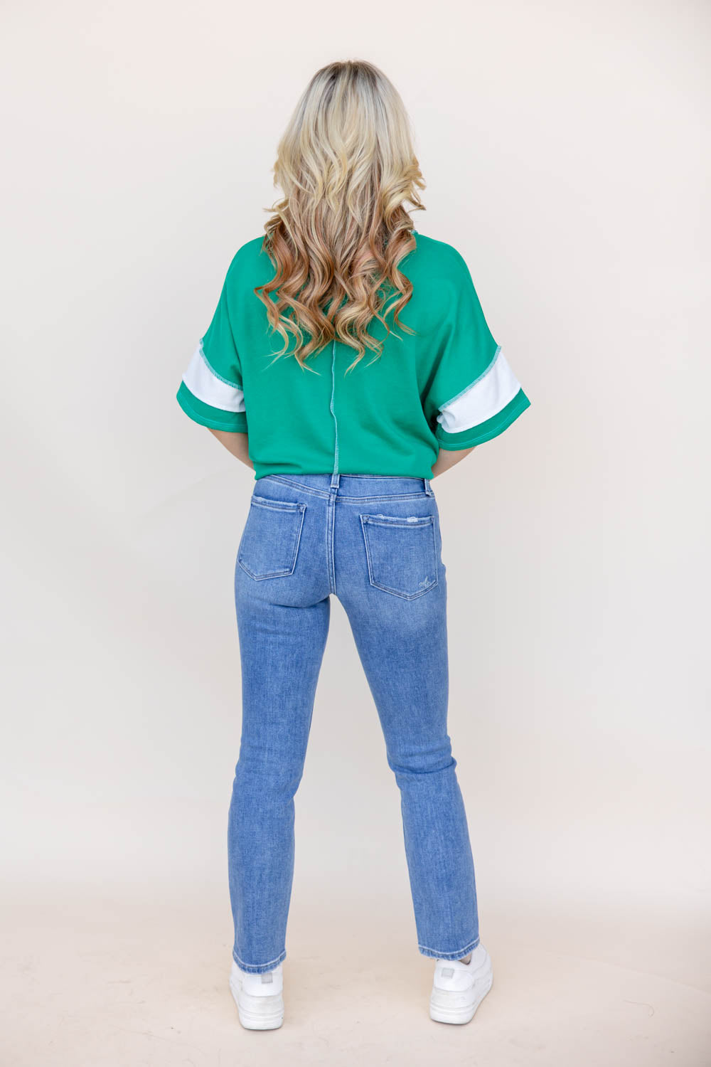 The Here For It Slim Straight Fit Jeans are made for, well, everyday ease. With a flattering mid rise and slim straight fit, they strike that sweet spot between relaxed and refined. The medium wash keeps things classic, while the ankle-length cut pairs effortlessly with sneakers, boots, or slides. Barely-there distressing gives them a hint of edge without overdoing it, and the traditional button and zip closure keeps the look clean and timeless. From morning errands to dinner plans, these jeans are ready to go wherever your day takes you.
