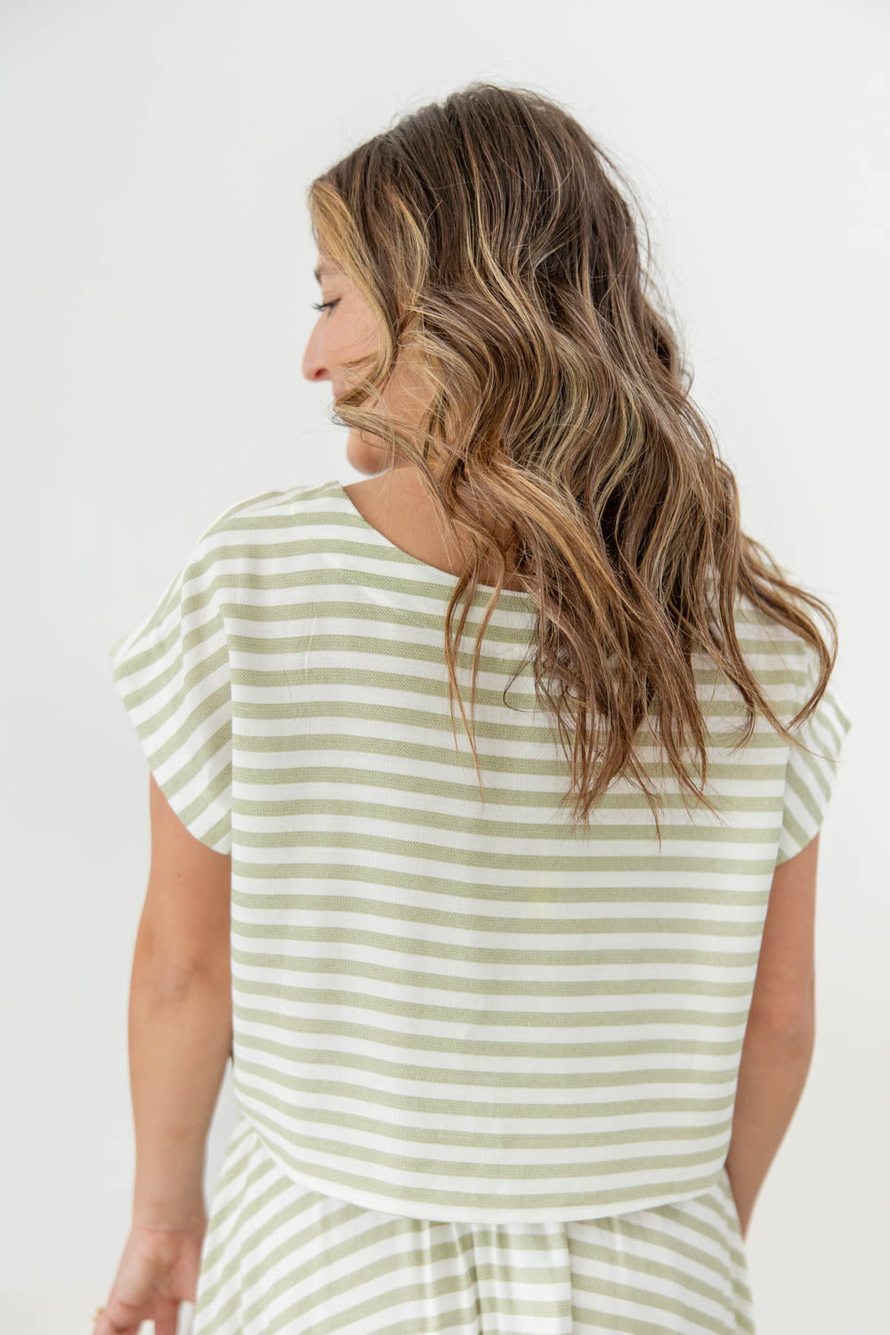Searching for the perfect summery top with a nautical touch? Look no further than the Lighthouse Glow Top! This breezy top features a slightly relaxed fit and a flattering cropped length, perfect for pairing with high-waisted bottoms. The boat neck and cap sleeves add a touch of timeless style, while the nautical blue and white horizontal striped pattern brings a fresh, coastal vibe. Made from a breathable fabric, this top will keep you cool and comfortable. Whether you're looking for a cropped top, a boat neck top, a striped top, or a summery top, the Lighthouse Glow Crop Top is a must-have. Pair it with our coordinating Lighthouse Glow Maxi Skirt for a complete look that's ready for anything!