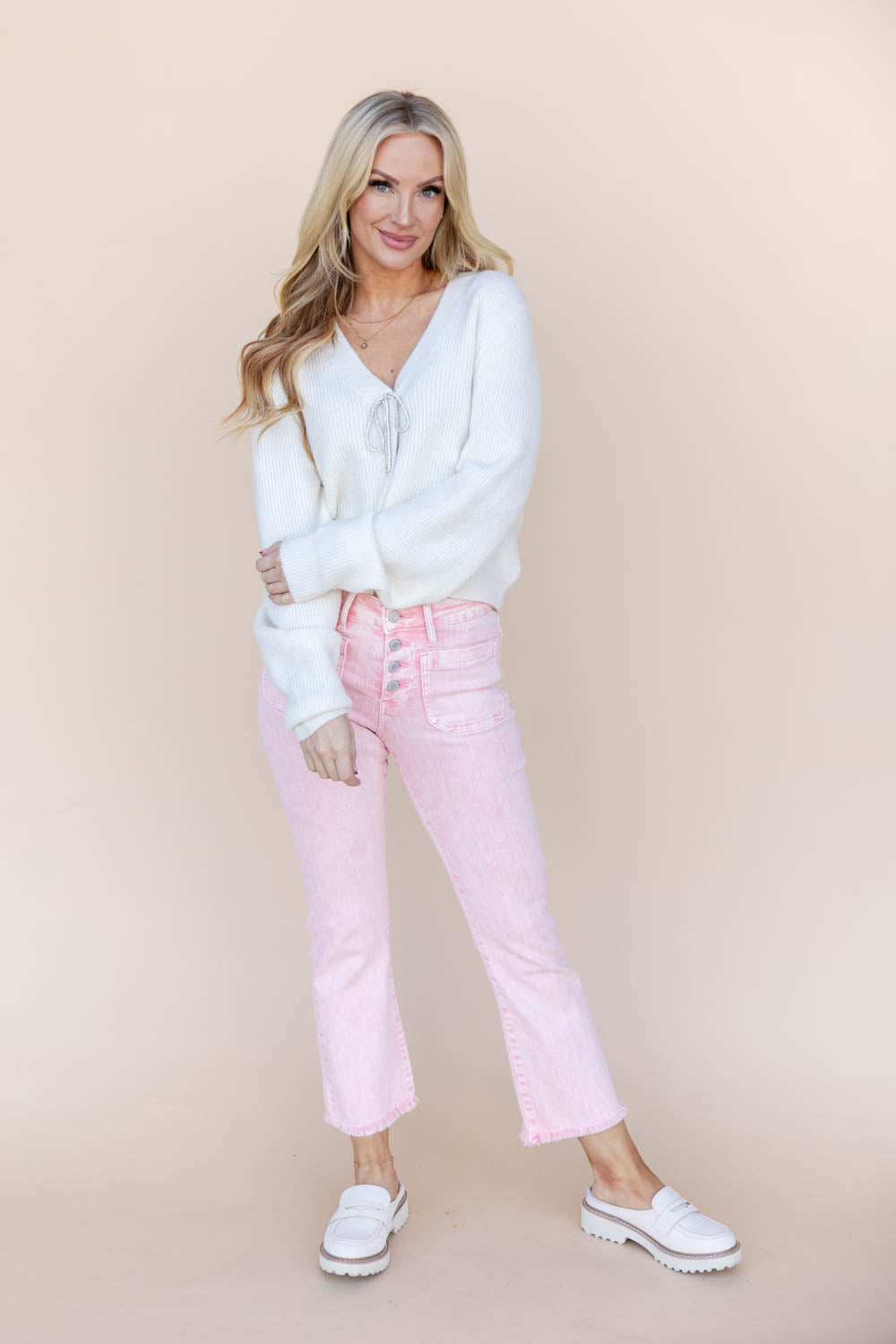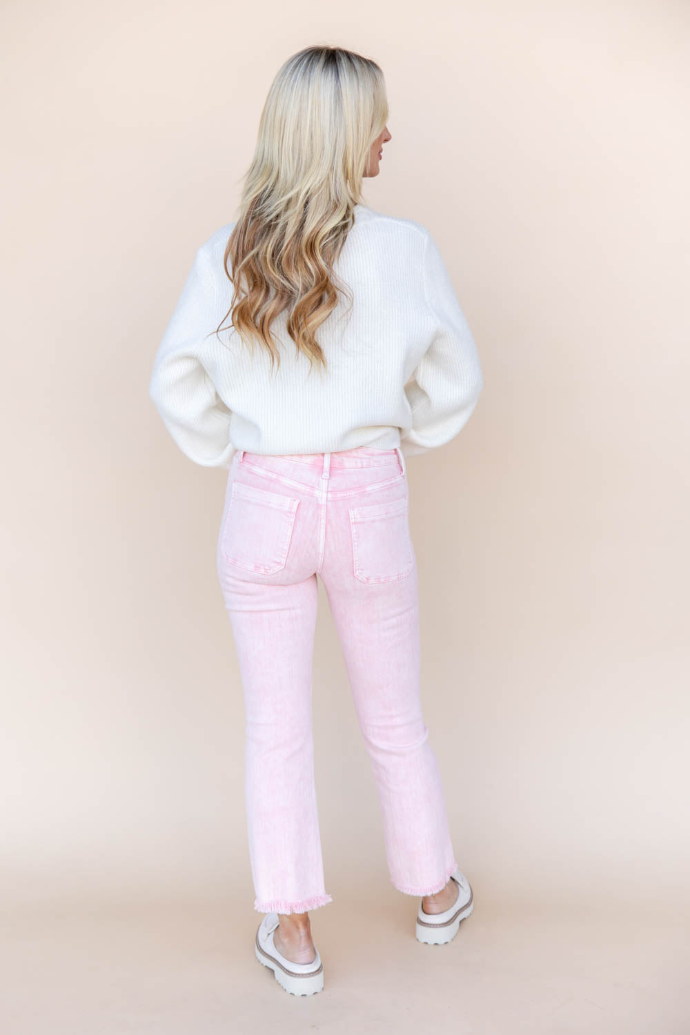 Fit Advice for our Bubblegum Blues Light Pink Crop Flare Vervet Jeans: