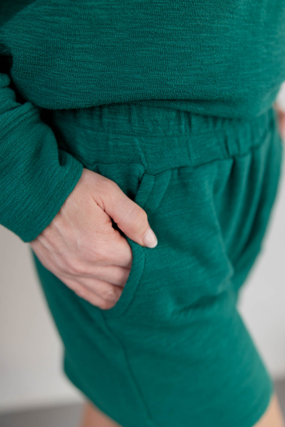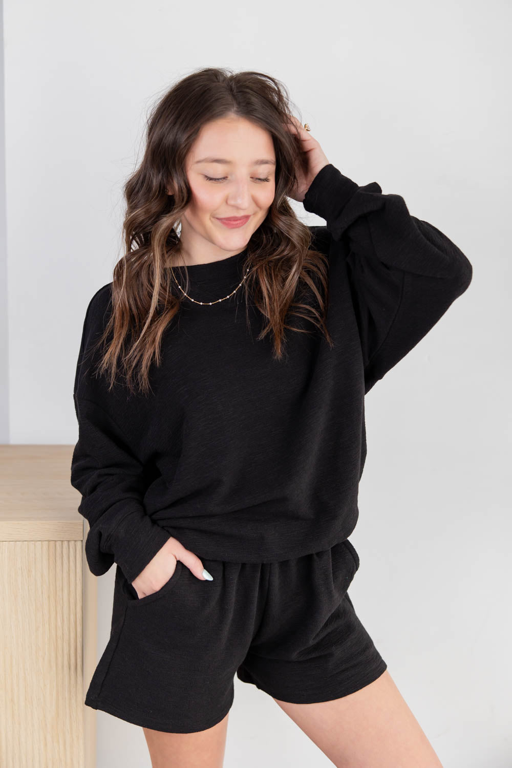 The Low Key Luxe Matching Lounge Set is made for cozy days that still call for style. The soft heathered fabric offers all day comfort, while the relaxed long sleeve top features a hip-length cut and a V-notched crew neckline for a casual finish. Paired with matching thigh-length shorts, complete with an elastic waistband and functional side pockets, this set is perfect for lounging, running errands, or laid-back weekends. Easy, comfy, and effortlessly put together.