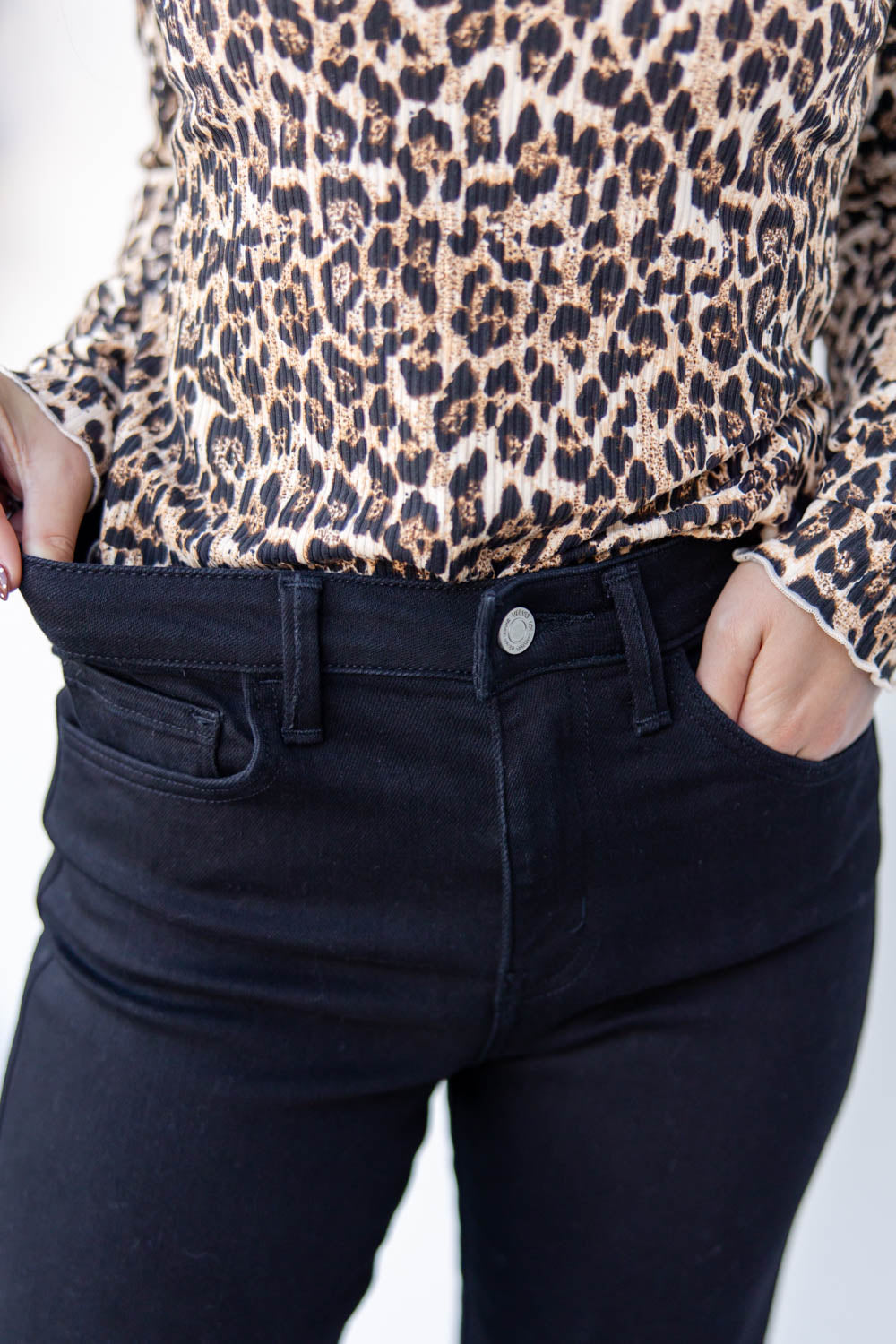 The Midnight Move Straight Leg Jeans are a sleek essential with a clean, modern edge. Designed with a subtle high rise and dark black wash, they feature a straight leg silhouette that’s endlessly versatile. Made from premium comfort stretch fabric, they move with you while maintaining their shape. Finished with a clean hem and classic button and zip closure, these non-distressed jeans are your go-to for polished everyday wear or elevated nights out.