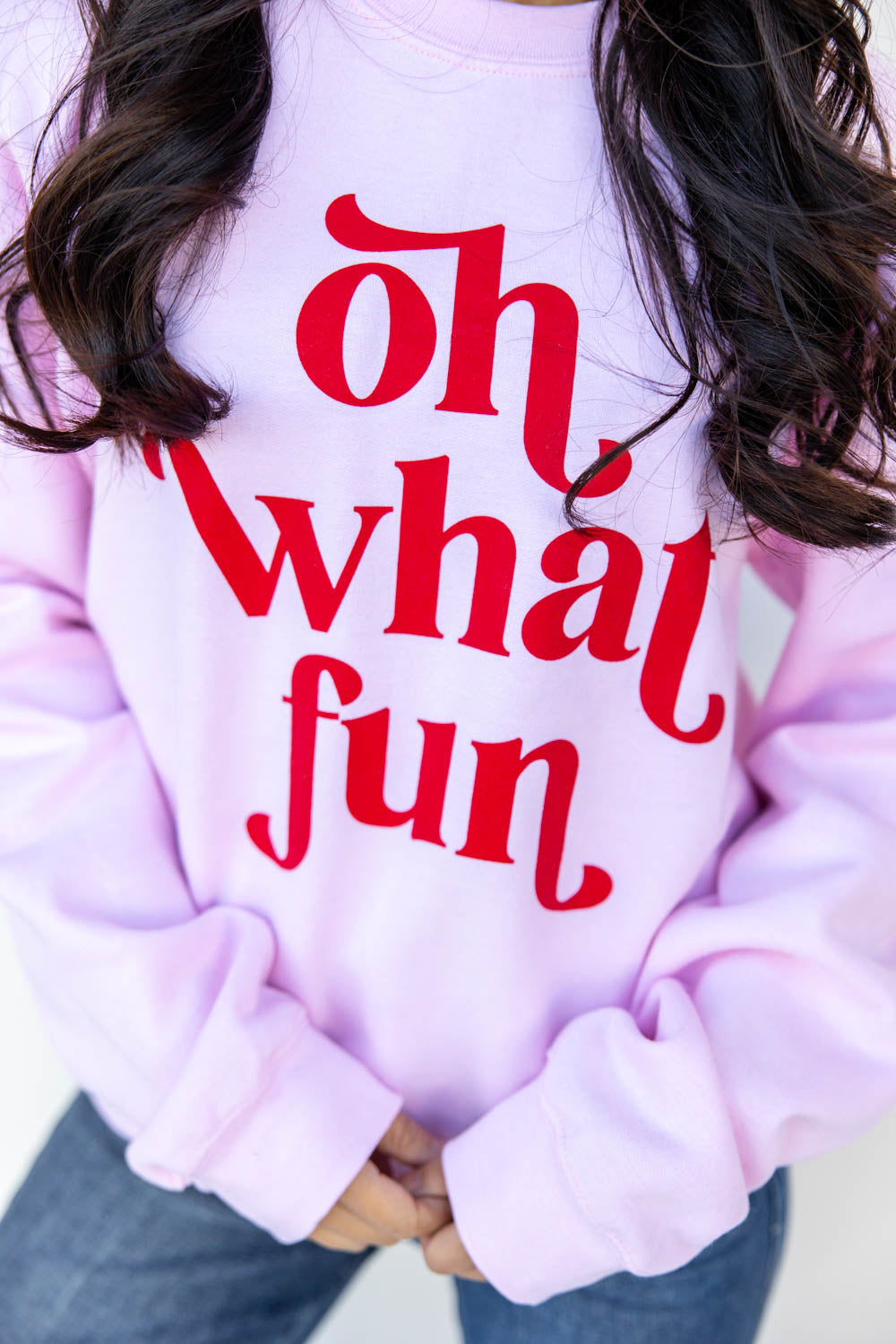 The Oh What Fun Crewneck Sweatshirt is pure holiday joy wrapped in cozy comfort. With a slightly relaxed unisex fit and soft, fuzzy interior, it’s built for hot cocoa sipping, movie marathoning, and every merry moment in between. The classic crew neckline gives it that timeless sweatshirt feel, while the pink base and bold red “oh what fun” lettering add a cheerful pop of color. It’s festive, it’s playful, and it’s the perfect pick for spreading holiday cheer without saying a word.