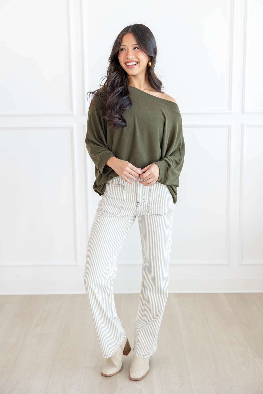 The Quietly Bold Dolman Top is that effortlessly cool piece you’ll keep grabbing season after season. With an oversized fit and longline length, it’s made for comfy-chic days when you want to feel relaxed but still look pulled together. The dramatic boatneck is perfect for an off-the-shoulder moment, and those 3/4 dolman sleeves bring all the slouchy charm. Soft, stretchy, and styled in dreamy transitional tones, it’s basically your new throw-on-and-glow essential.