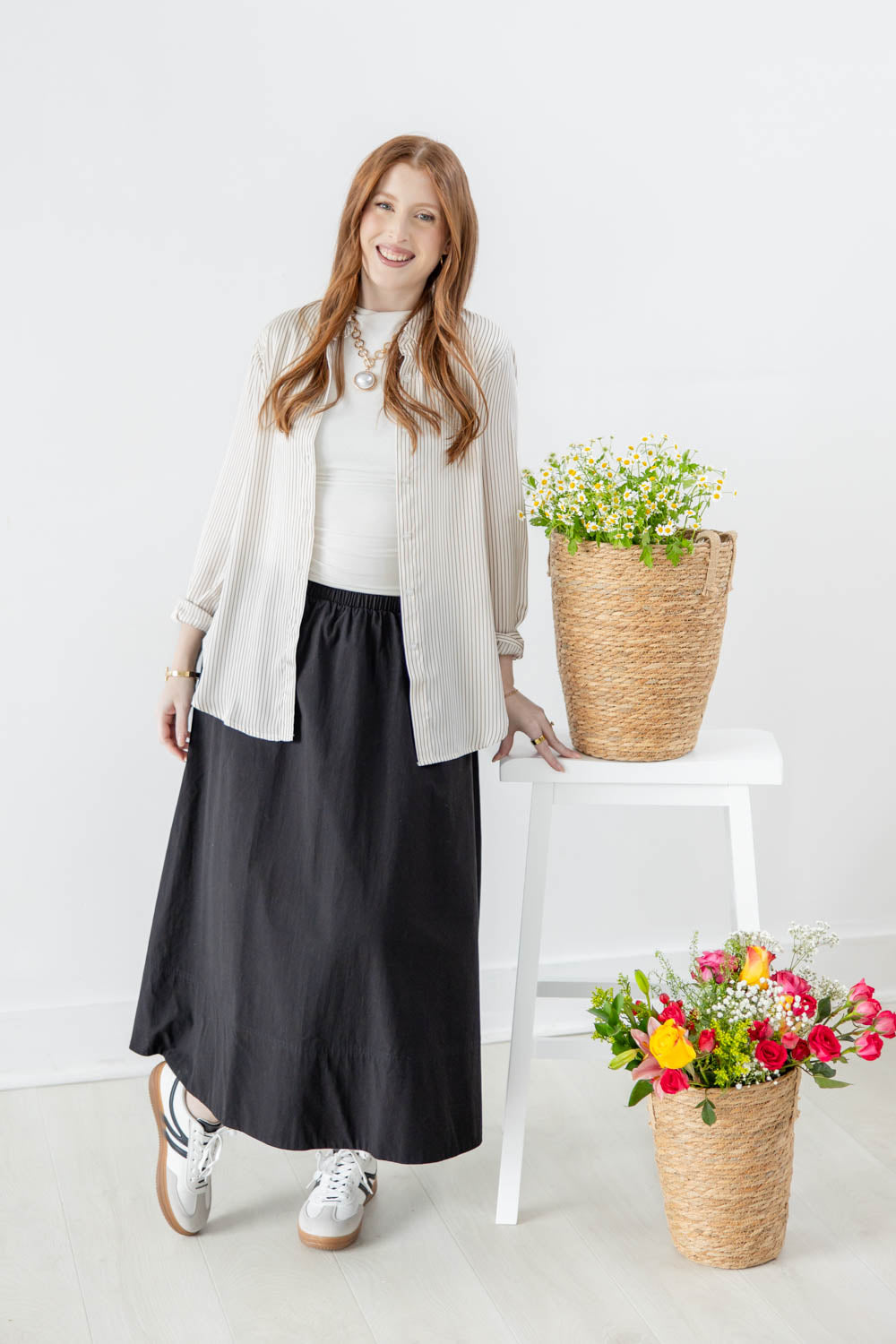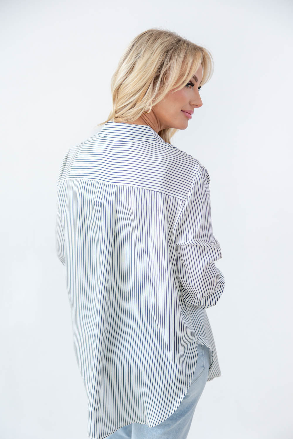 The Radiant Lines Long Sleeve Button Down Top is made for days when you want to feel relaxed but still look styled. Its oversized fit and tunic length create an easy drape that flatters without clinging, giving you that effortless, confident feel the moment you put it on. The lightweight fabric keeps things breathable and comfortable all day, while the vertical stripe pattern naturally elongates your look. A classic collar and button front make it versatile enough to wear loose, half tucked, or layered. This is the piece you reach for when you want comfort, polish, and ease all in one.