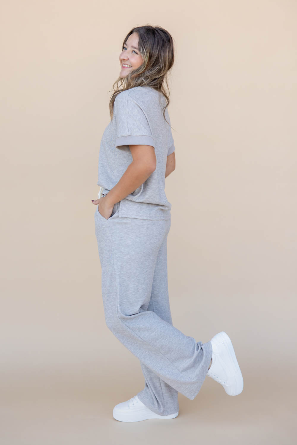The Ready Set Chill Lounge Pants are your go to for comfort that still looks put together. Designed with a relaxed, wide leg silhouette and ankle length cut, they offer a flattering drape in ultra-soft knit fabric. The elastic waistband with drawstring keeps the fit flexible, while side pockets add everyday function. Pair them with the matching Ready Set Chill Short Sleeve Top or an oversized sweater for a cozy look that works inside and out.