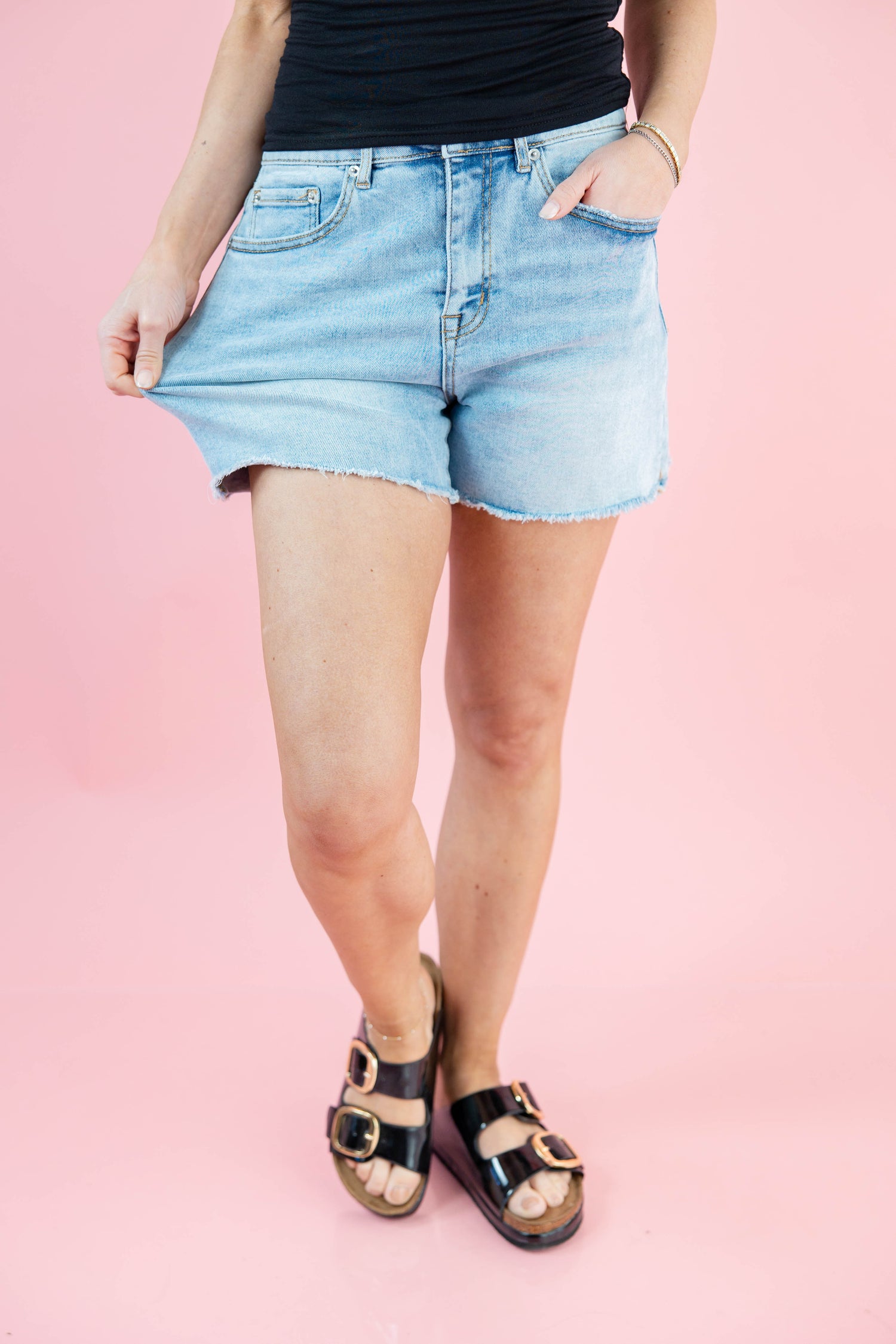 Say hello to your new warm-weather favorite: the Roll With It Frayed Stretch Denim Shorts! With a flattering high rise, relaxed fit, and just-right light wash, these non-distressed beauties keep things classic while the frayed hem adds a little edge. Whether you're brunching or beach-cruising, they’re made to move with you—and keep you looking effortlessly cool while doing it.