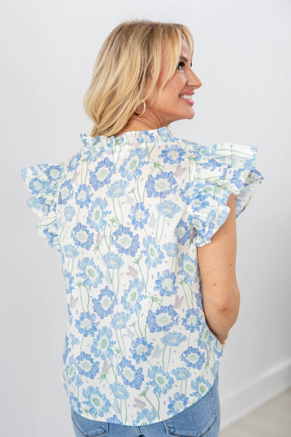 The Ruffle My Petals Floral Short Sleeve Top is made to bring a little romance to your everyday look. The flowy, true to size fit drapes beautifully without clinging, giving you comfort that still feels flattering. A soft V neckline with a small ruffled collar frames your face in the prettiest way, while ruffled short sleeves add light, feminine movement. The hip length makes it easy to wear tucked or untucked, and the floral bloom pattern adds a fresh pop that feels perfect for the season. Easy, airy, and effortlessly polished, this is the top that makes getting dressed feel fun again.