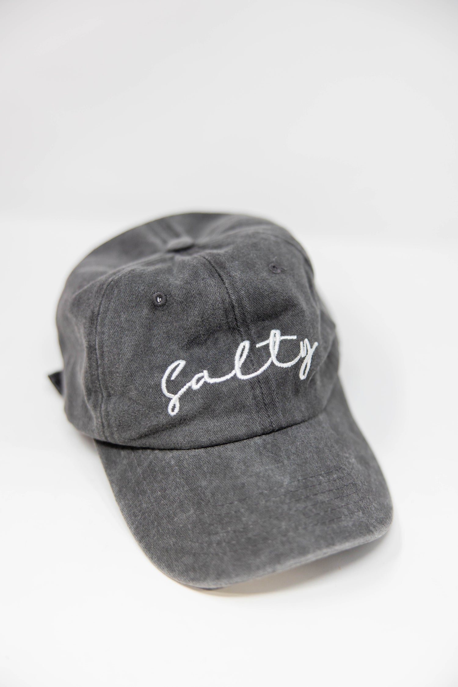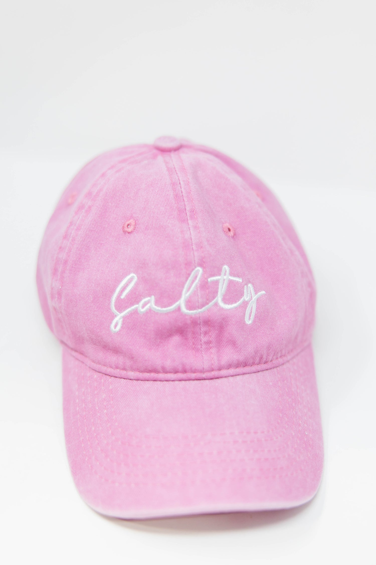 The Salty Embroidered Baseball Cap adds a playful twist to your sunny-day style. Made from lightweight fabric with a classic baseball shape, it keeps you cool and comfortable wherever the day takes you. The adjustable back closure ensures a personalized fit, while the contrasting visor and top button add a fun pop of color or print. Finished with cursive embroidered “salty” text, this cap brings personality to any casual look. One size fits most.
