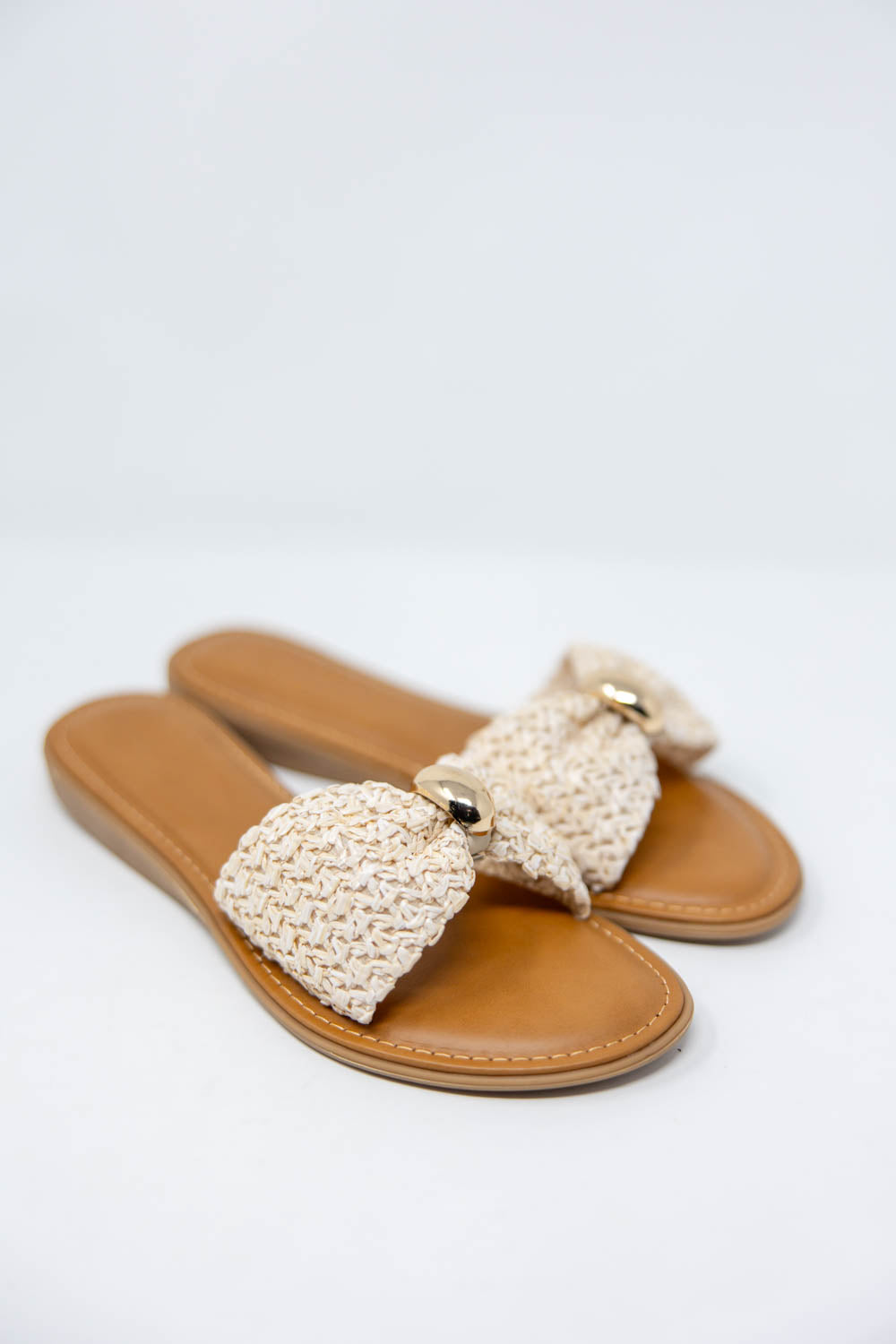 The Soft Twist Sandals is your easy answer to warm weather style. Designed true to size, it slips on effortlessly and feels comfortable from the first step. A padded vegan leather footbed cushions your stride, while the barely there wedge gives you subtle lift without sacrificing comfort. The flexible mesh jute upper keeps things breathable, and the gathered detail with a gold bead adds just the right touch of polish. Lightweight, flattering, and simple to style, this is the sandal you will reach for all season.