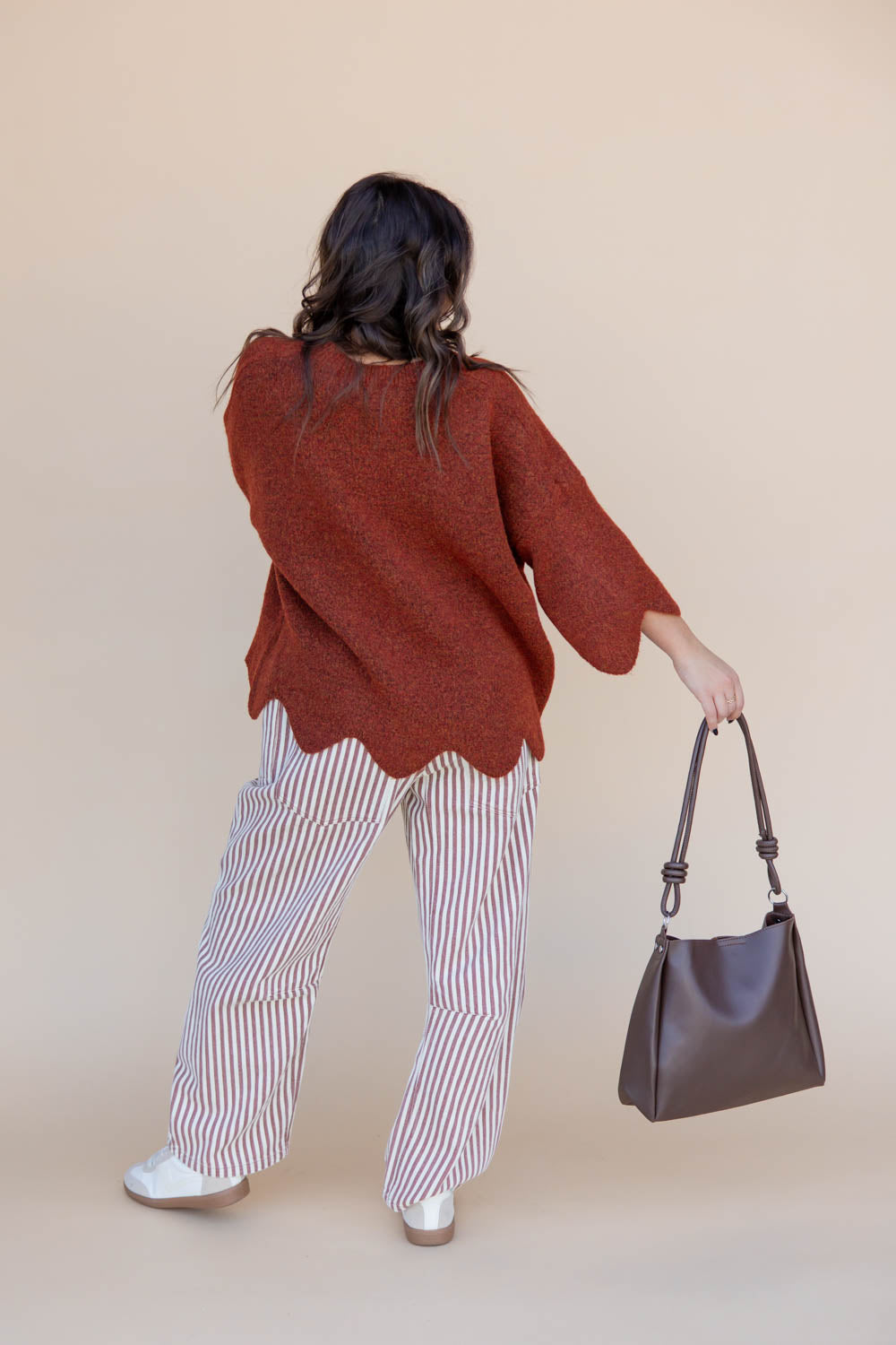 The Soft Side Short Sleeve Knit Top is cozy with a statement. Designed with an oversized fit and semi-cropped length, it brings that perfectly slouchy vibe without feeling shapeless. The crew neckline keeps things classic, while the half-length bell sleeves and exaggerated scallop detailing at the cuffs and hem give it a playful, eye catching finish. Crafted from a soft mid-weight knit, it’s the kind of piece that makes your jeans feel fancy and your leggings feel intentional. Just add boots and go!