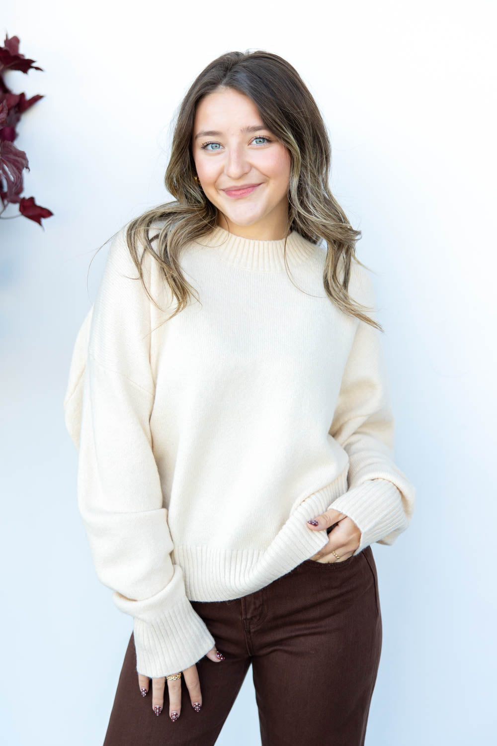 The Staple Piece Crewneck Sweater is made for those effortlessly laid-back days. With a relaxed, baggy fit and semi-cropped length, it brings just the right amount of slouch to your silhouette. The drop shoulders and lightweight knit keep it comfy and casual, while the crew neckline and ribbed trim at the neck, hem, and cuffs add a clean finish. Pair it with wide-leg denim or layer it over a slip dress for that perfect undone-but-intentional vibe.