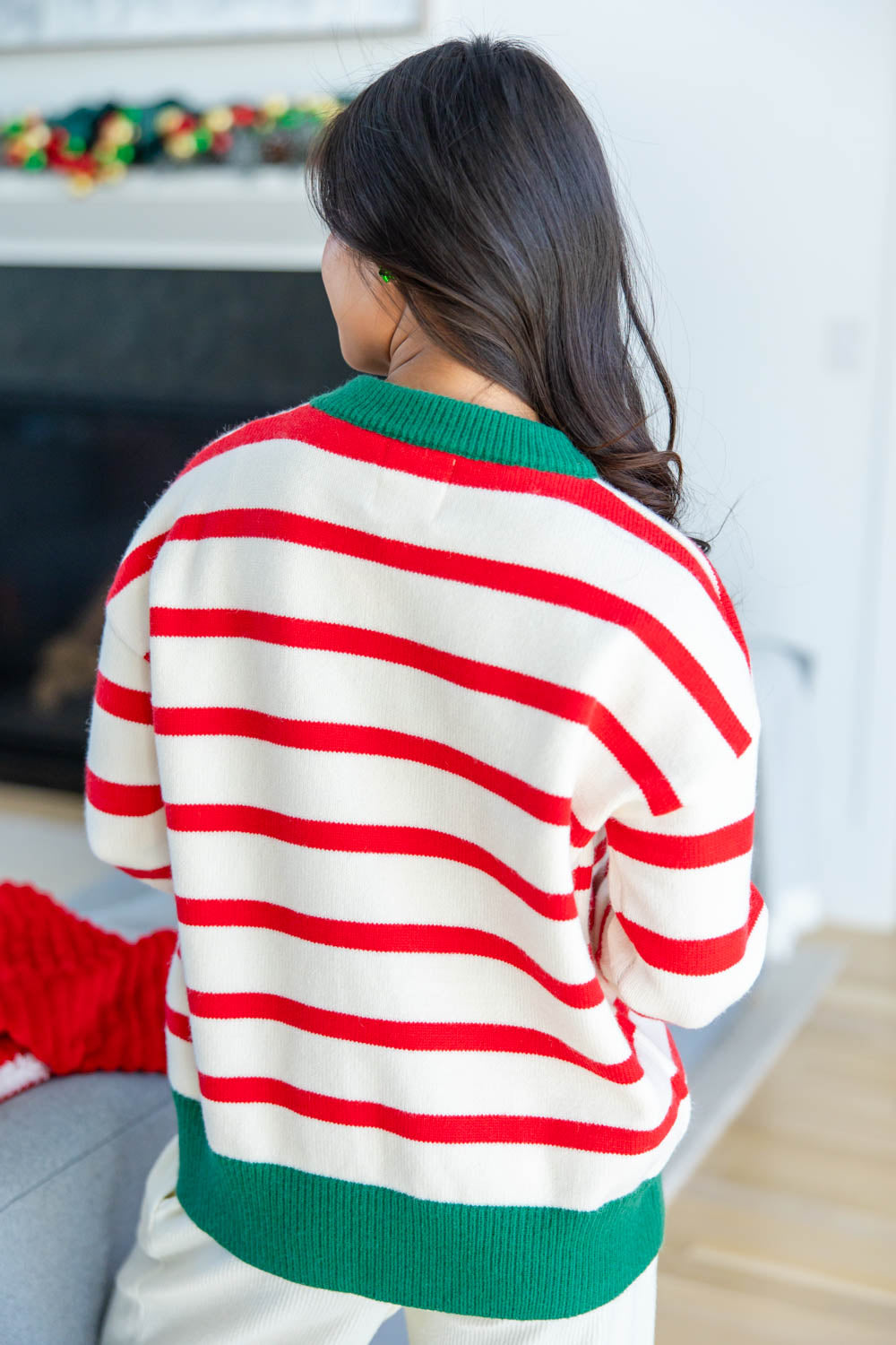 The Stripe the Halls Crewneck Sweater is a holiday classic with a playful twist. With its relaxed fit and hip-length cut, it’s the kind of cozy you’ll reach for on repeat. The bold red stripe pattern brings all the seasonal cheer, while the contrasting green ribbed trim at the neckline, cuffs, and hem adds that extra festive flair. Made from a mid-weight knit that’s soft and comfy without feeling bulky, this crewneck is perfect for everything from cookie decorating to casual holiday hangs. It’s merry, bright, and just the right amount of nostalgic.