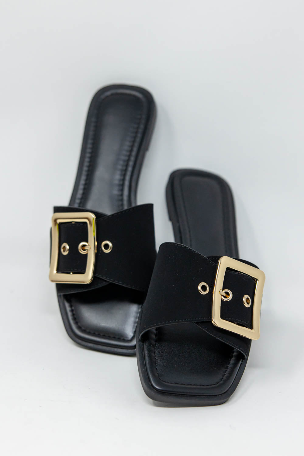 The Strut Society Sandals is the effortless upgrade your everyday outfits need. Designed true to size, it slips on easily and feels comfortable from the first step thanks to a cushioned footbed. The square toe adds a modern edge, while the vegan leather upper keeps the look sleek and versatile. An oversized square buckle lets you adjust the fit for added comfort and style. Available in camel, beige, leopard, or black, it is the go to sandal you will wear on repeat.