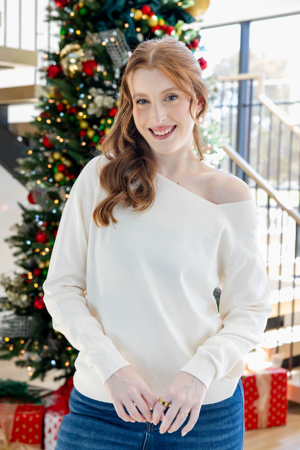 The Styled Off Center Long Sleeve Top is made for those moments when you want to feel festive without going full sequin. Its asymmetrical neckline brings just enough unexpected charm, while the stretchy rib knit keeps things comfy from cookie swaps to classroom parties. Designed with a relaxed, true to size fit and hip-length cut, it layers like a dream under your favorite shacket or stands on its own with high-rise jeans and a bold red lip. Ribbed cuffs and hem give it a polished touch, and the lightweight knit makes it an easy pick for cozying up indoors or dashing through chilly errands.