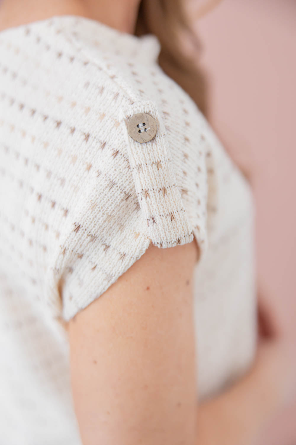 The Subtle Stitches Short Sleeve Top brings relaxed polish to your everyday rotation. The true to size fit gives you easy comfort, while the cropped length pairs effortlessly with high rise denim and shorts. A notched collar adds structure and frames your neckline beautifully, and short sleeves with a button tab let you adjust the look to suit your day. The lightweight knit feels soft and breathable, and the neutral toned disconnected stitch pattern draws the eye in for a flattering, elongating effect. It is the kind of top that feels casual but still completely put together.