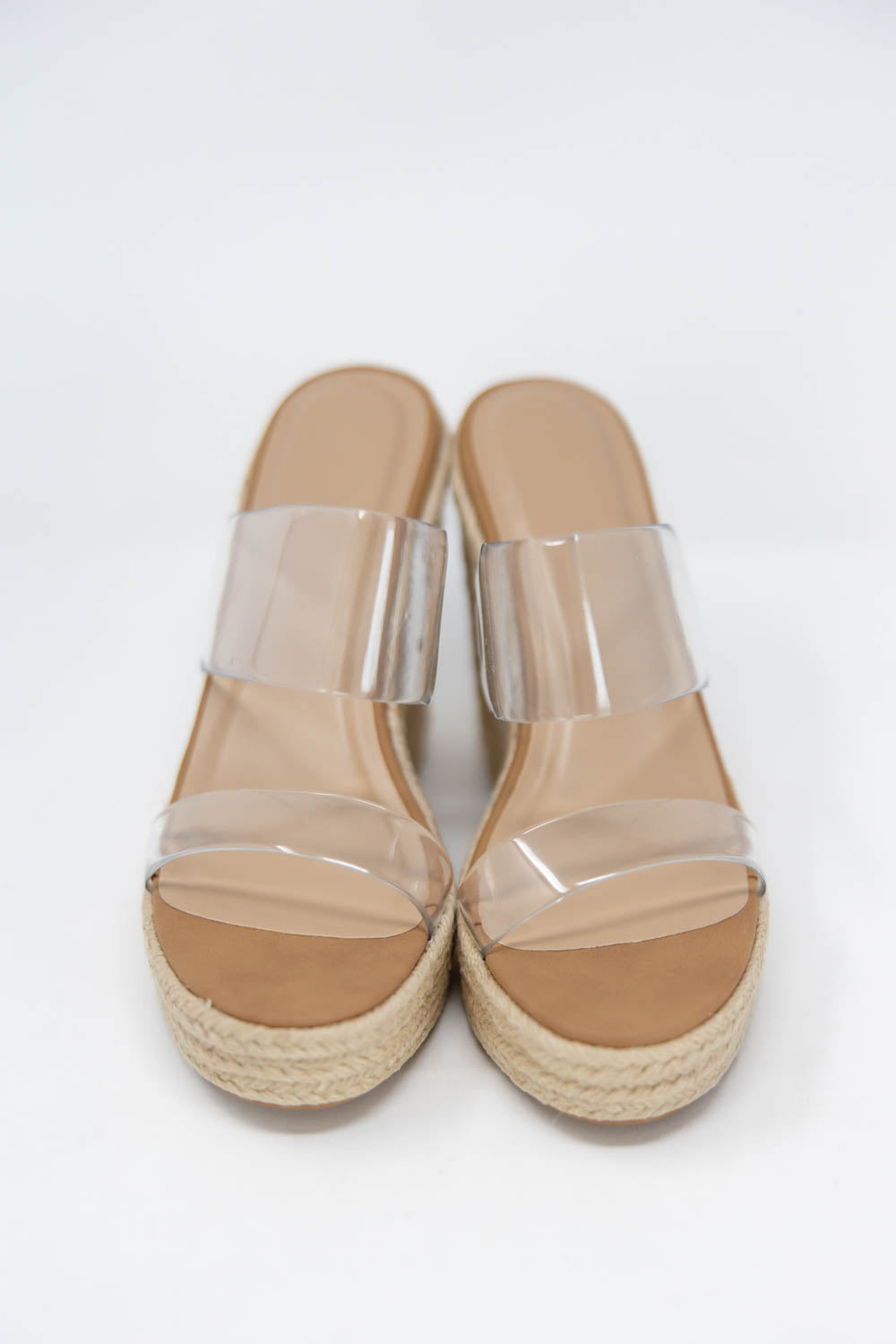 The Sunset Boulevard Clear Platform Sandals gives you height that feels light and effortless. The espadrille wedge and braided jute platform create that warm weather look you love, while the platform design adds lift with extra stability. Flexible clear upper straps hold your foot comfortably in place without overpowering your outfit, making them easy to pair with everything from denim to dresses. A padded footbed cushions every step, and the rounded toe keeps the fit natural and wearable all day. Slip them on when you want a little extra height without sacrificing comfort.