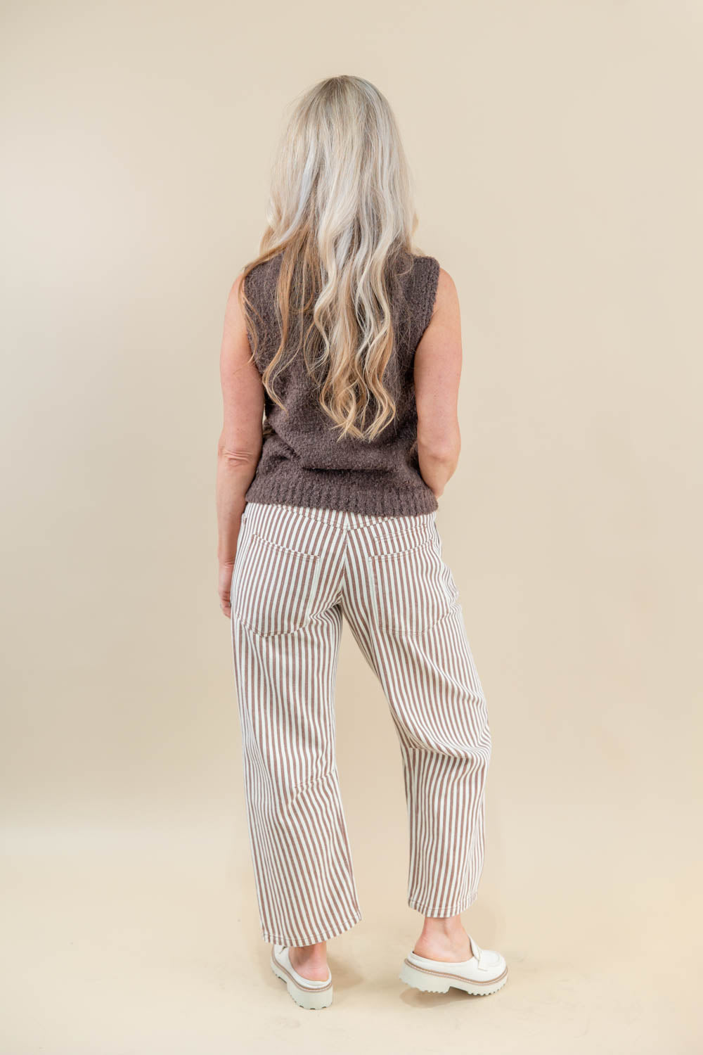 The Rope Me In Relaxed Fit Stripe Pants are giving vintage vibes with a modern twist. Designed with a high rise and a relaxed, subtle barrel leg fit, they’re effortlessly cool and ankle length for that just-right crop. The bold stripe pattern and vintage wash set them apart from your usual denim, while the patchwork detail, each piece a little different, adds texture and character. A matching colored rope tie waistband cinches things up with a casual, laid-back feel, and the oversized front patch pockets are as functional as they are fun. These are the pants you reach for when you want comfort, style, and a little personality all in one look.