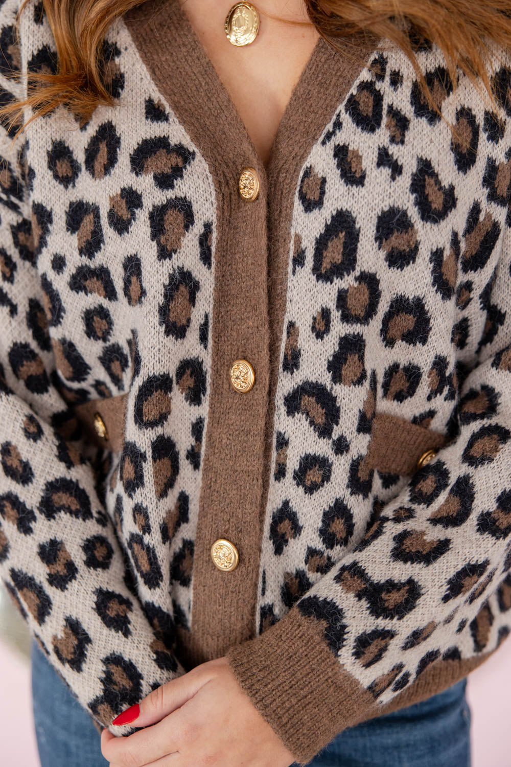 The Wild Child Leopard Sweater Cardigan is unapologetically bold and endlessly cozy. Designed with an oversized fit and deep V-neckline, it gives you that effortlessly cool, borrowed-from-someone-great kind of vibe. The soft, heavyweight knit keeps you warm without sacrificing style, while functional gold buttons add a luxe touch down the front. Button-accented front pockets bring both detail and practicality, and the trendy leopard print turns even a simple outfit into a statement. It’s comfort, elevated — and ready to roar.