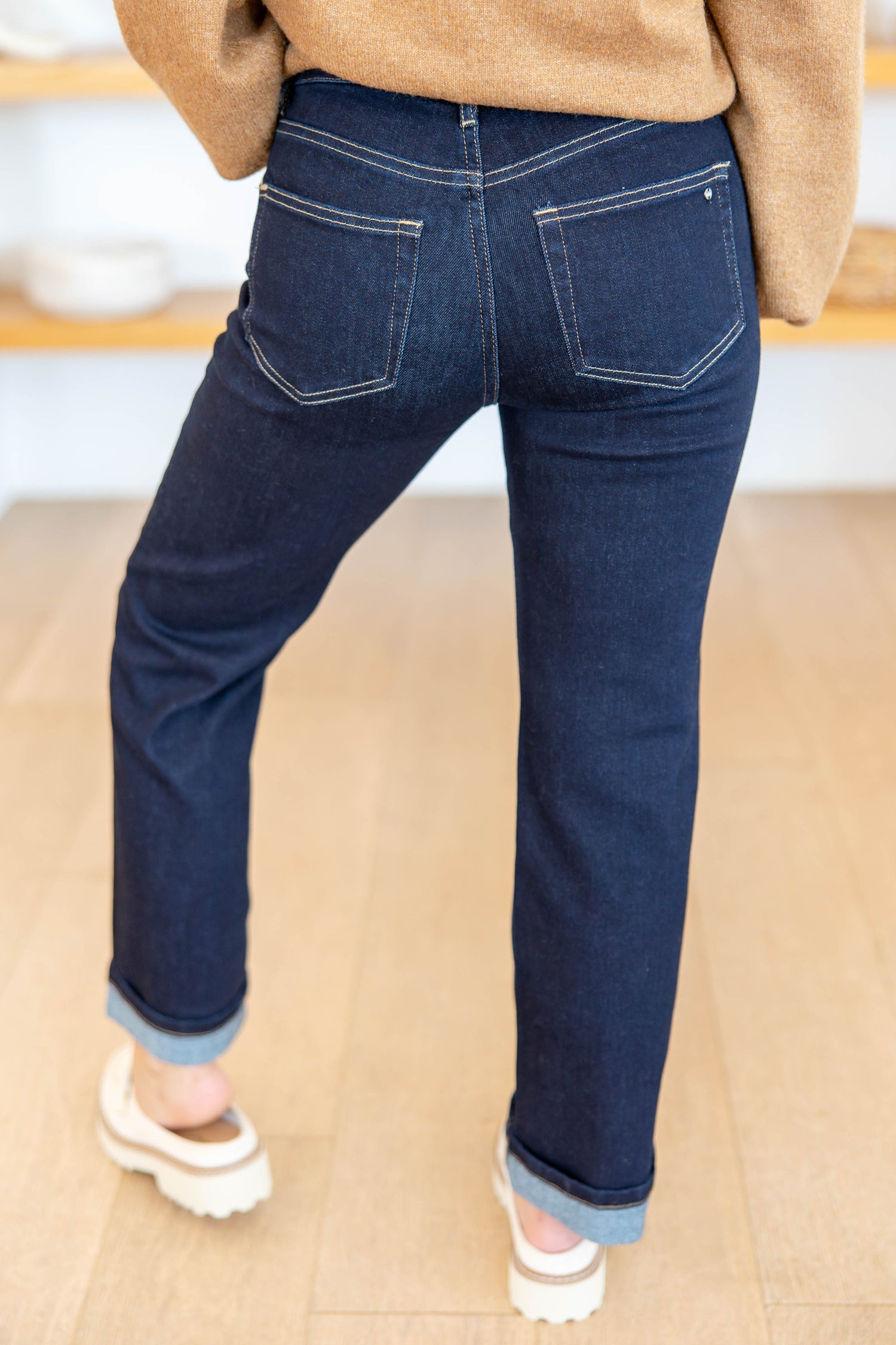 Fit Advice for our You Got This Super Dark Wash Straight Leg Jeans: